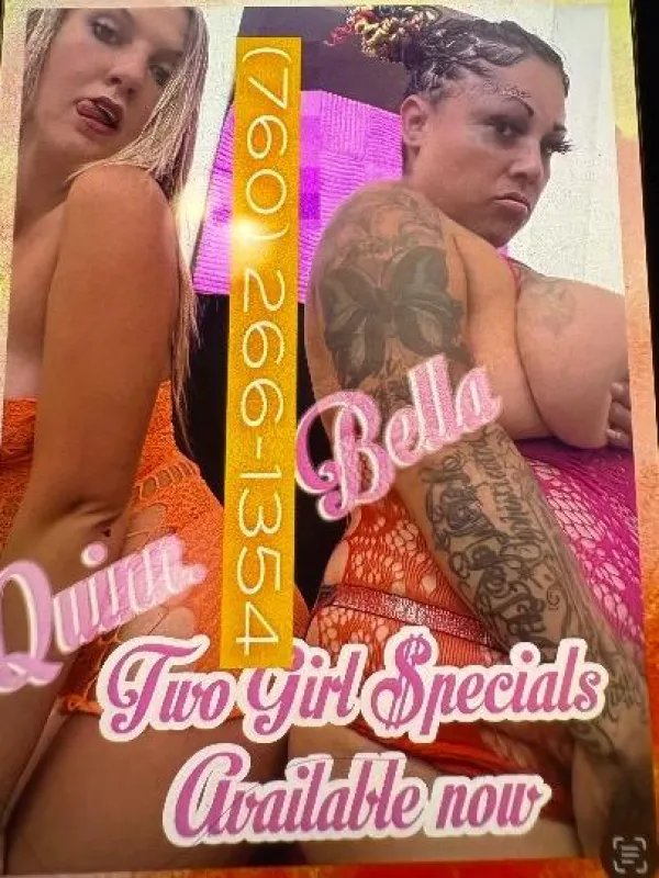 The color contrast is amazing π The best of both worlds π small breast, large breast. Bubble butt, Donk-a-Donk. Warm little cat. Fat juicy cat. Two sexy beautiful ladies, offering more than enough to satisfy ALL of your needs π€€ Safe and discreet, we aim to please. Can you handle one or both of us big daddy π Hi I'm bella Beautiful, Voluptuous , BBW here to bring your fantasy to life. Don't let my laid-back demeanor fool you, i love to have fun, especially with my girlfriend Quinn This is a choice you'll be glad you madeπ€€ Hello gentlemen, you can call me Quinn Im a sexy, saasy, but respectful Southern bell π A little more cushion for the pushin, my plump π will give you a release youll think about the next day. May i sit my bubble butt on you My girl and I are waiting...π¦ π¦- QV Specials (1 or 2 2girl 15m 300 $$) (hhr 500$$) hr $1000$) (Qv )single girl (120$$)both200 - Incall/Outcall π¦- Full Service π«- No Rushing π¦- Fetish π«-Private Callers π«- Law